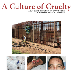 [10] No More Deaths. “A Culture of Cruelty: Abuse and Impunity in Short-Term U.S. Border Patrol Custody”, 2011, http://www.cultureofcruelty.org/documents/2011_report, (accessed March 20, 2012)