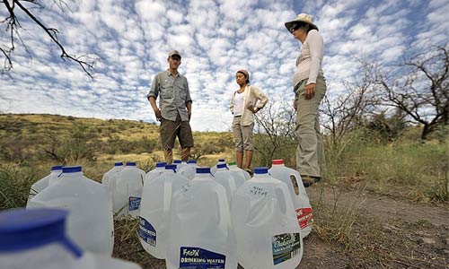to the magnitude of traffic through the protected areas and while NMD’s distribution of water jugs is meant to save lives, critics cite the organization’s inadvertent contribution to environmental damage. As a result, many NMD volunteers have been smacked with littering charges and fines[6] and in response; NMD has coined “Humanitarian Aid Is Never A Crime” as their slogan.